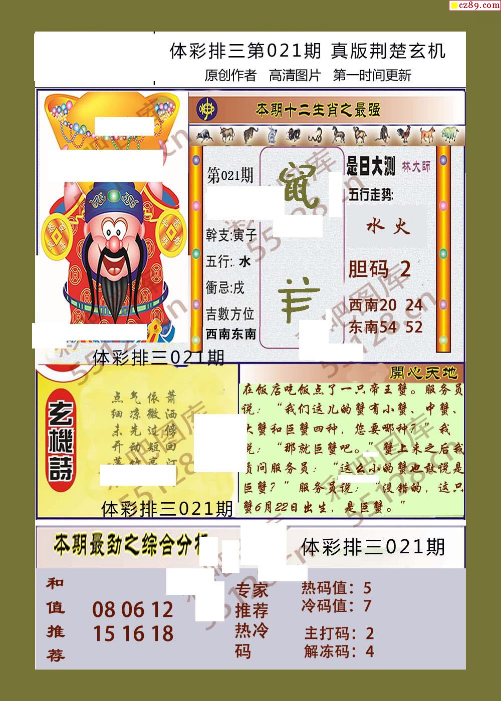 荆楚玄机021期体彩p3图谜