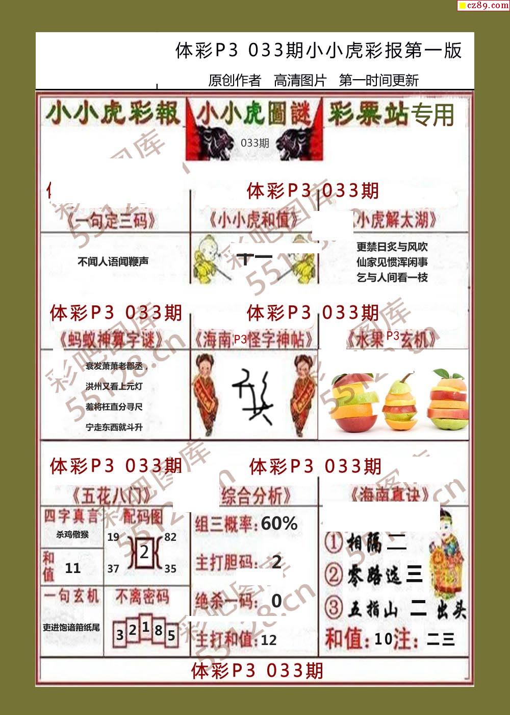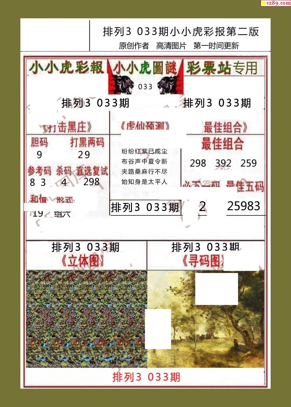 小小虎彩报033期体彩p3图谜