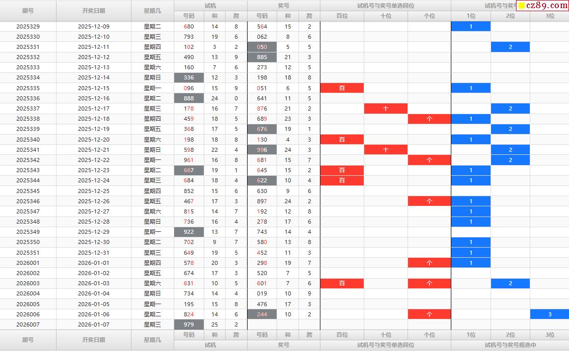 > 26年007期福彩3D试机号走势图表分析